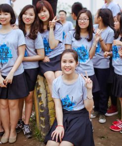 Ưu tiên nền navy/đen, thêu ngực nhỏ và in lụa 1–2 màu phía sau để tổng thể sang. Slogan Áo nhóm – I can’t you can’t but we can có thể thêm năm tổ chức & hashtag để lan tỏa tinh thần chiến thắng.
